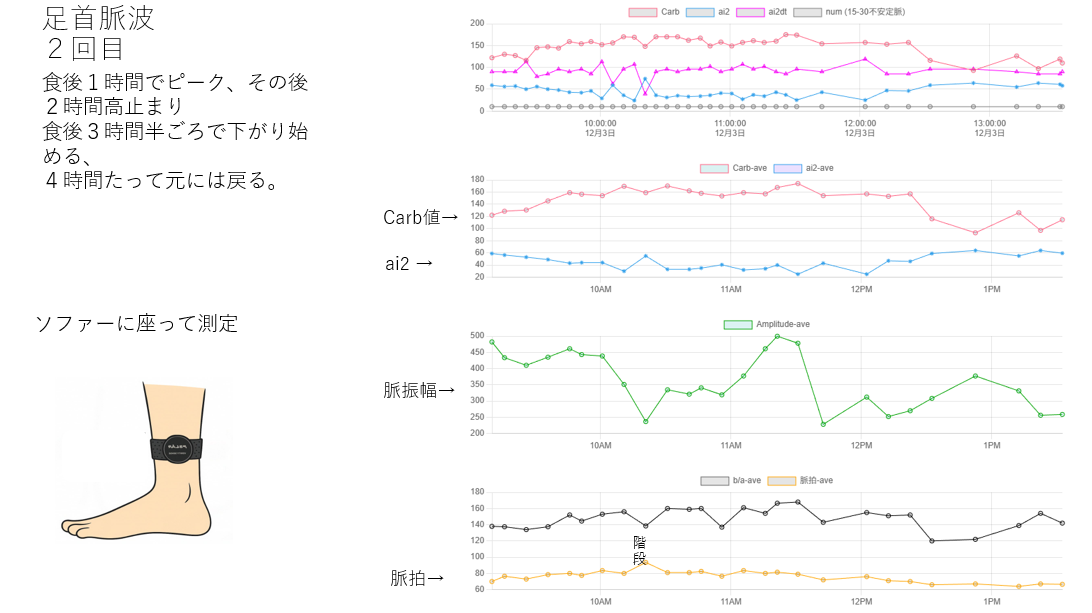 ■昼食時の上昇が2山、脂質根影響か、夕食後は高止まり。