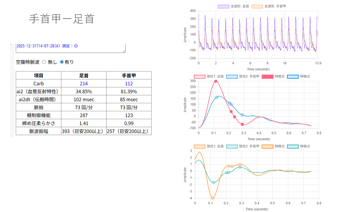 1. 2点同時PPG計測(単回・インターバル)による差分解析
