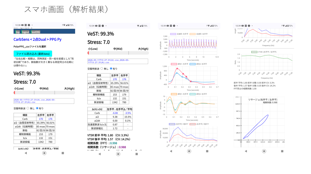 CarbSens Watch/Dualは、日常の健康管理をサポートするためのツールです。本製品は医療機器ではなく、診断、治療、または病気の予防を目的としたものではありません。測定結果や推定値は参考情報としてご利用いただき、健康に関する重要な決定を行う際には、必ず医療専門家にご相談ください。なお、研究目的でのご利用を検討される場合は、所属機関の指針に基づき、適切な手続きをご確認ください。